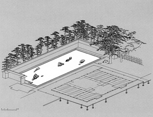 Podemos vincular la noción de “shakkei” a dos tipos característicos del jardín japonés: el jardín del paisaje prestado, que incorpora un escenario distante como parte de su diseño, contrapuesto al jardín del patio pequeño, cerrado generalmente por las estructuras que componen una residencia, un templo, un restaurante o un bar. El jardín de te que influye poderosamente el jardín de patio residencial tienen aquí una aparición casual. De hecho, al colocar el jardín shakkei y el jardín de te en posiciones próximas, podemos diferenciar sus singularidades. Los jardines son objetos vivientes y, si se abandonan, se arruinan; y hoy los casos mencionados están desapareciendo. 1.- CAZAR VIVO Shakkei quiere decir paisaje o escenario prestado, pero en un significado original es un paisaje capturado vivo. La distinción es pertinente: cuando se caza algo vivo, debe permanecer vivo, como lo era antes de su captura. Sin resaltar este matiz, es imposible percibir la esencia de un jardín prestado o de un tsuboniwa (un jardín con patio, o cerrado). El concepto existía en el periodo Heian (794- 1185), pero no se estableció propiamente hasta el periodo Muromachi (1336- 1568). Y sólo a principios del siglo XVII en China y del XIX en Japón se empezó a usar el término shakkei (en chino chieh-ching ). Li Chi- Cheng publicó en 1634 un libro de paisajismo llamado Yuan- yeh (en japonés En'ya ), donde aparece el término shakkei por vez primera: “No hay reglas especiales para construir un jardín, pero para el préstamo de paisajes hay ciertas técnicas, y son de la mayor importancia para diseñan un jardín con árboles. Las técnicas son de cuatro tipos diferentes: -tomar prestado desde una gran distancia, -tomar prestado desde cerca, -tomar prestado desde un nivel alto, y - tomar prestado desde un nivel bajo. Cualquiera de ellas puede usarse de acuerdo con la situación y las oportunidades disponibles”. Los nobles de los periodos Nara y Heian admiraban el escenario de las ciudades vecinas de Nara y Kyoto, pero no lo captaban o reproducían en sus jardines, preferían copiar en miniatura paisajes que les recordaban a sus destinos diplomáticos en remotos lugares. En el periodo Asuka (552- 646) y en los periodos Nara y Heian los jardines eran llamados shima, o islas, lo que indica que en estos tiempos el objetivo principal era la reproducción del paisaje de la costa. En las colecciones de poesía incipiente: los Man'yoshu , o los Ise Monagatari , el término ‘islas' es sinónimo de jardín. 2- CÓMO CONFIGURAR UN JARDIN SHAKKEI El jardín debe estar dentro del ámbito de un edificio o conjunto de edificios. Los jardines shakkei cerrados son extremadamente raros. Y los jardines de casas de te no son shakkei. el roji o “camino de rocío”, a través del jardín de la casa de te hacia el nijiri- guchi , la obertura de puerta corredera baja por la cual los invitados entran a la casa de te, es un recorrido que induce a la contemplación, y aquellos no deben ser distraídos. Por ello todo el ritual de purificación en torno a la pileta de piedra con cuya agua se refrescan y purifican tiene un sentido. Por idénticos motivos, el cucharón de bambú ha de dejarse con el mango hacia el posterior visitante, como recibiéndole, porque se ha de pensar en los demás. El objeto que ha de ser capturado vivo es variable y relevante para la situación correspondiente: el Monte Hiei, el Fuji… también objetos ratifícales, puertas o campanarios de templos Zen, o las luces de las barcas de pescadores. Mikiri –o recorte: el medio por el cual el jardinero limita el paisaje prestado a los rasgos que quiere mostrar: muros bajos de arcilla con tejas de cerámica, setos, cuidadosamente cortados; en ocasiones con plantaciones mezcladas: camelias, gardenias, encinas, acebo, ocultamiento mediante taludes o desmontes de tierra (como sucede también en la arquitectura escandinava, en la villa Mairea de Alto o en el Cementerio Sur de Estocolmo de Asplund). Por fin y no menor, el vínculo entre el escenario prestado con el primer término mediante objetos intermediarios: árboles que marcan las visuales, plantaciones de árboles en el entorno próximo y en el lejano estableciendo así una continuidad, superficies de agua para reflejar partes del panorama. No consideramos que haya una relación inmediata entre estas técnicas y las villas experimentales escandinavas, aunque la existencia de una casa japonesa en la Exposición de Estocolmo tuviera sus efectos. Más bien, une a las obras orientales y a éstas una sensibilidad común, por el contraste entre simétrico y asimétrico, rugoso y pulido, recto y orgánico, que se percibe en la obra de múltiples arquitectos. (Al curioso lector le remitimos a Teiji Itoh: Space and Illusion in the Japanese Garden. Algunas de las fotos que se adjuntan son de Soshei Kuzunishi) Agradezco a Alberto Altés la conexión con el webmaster y, además del apoyo moral, la paciencia de ordenar textos e imágenes). [arxiu comprimit de les imatges]