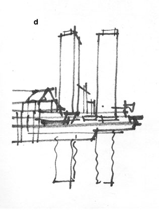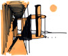 La línea se vincula a las orientaciones predominantes de las estructuras principales en la imagen. subraya la funcionalidad de contorno decidido que resalta las figuras y permite diferenciar diferentes planos, aportando con ello sensación de escorzo y profundidad.