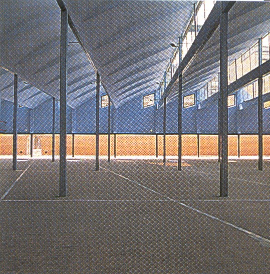 Podem apreciar en la imatge l'extraordinària esveltesa dels pilars de l'estructura, que suporten les jàsseres de gelosia (també metal·liques). Aquests pilars tenen una altura superior als cinc metres i donades les solucions constructives emprades, s'obtenien uns valors d'esveltesa superiors a 400 (actualment les normatives fixen com a límit 200)