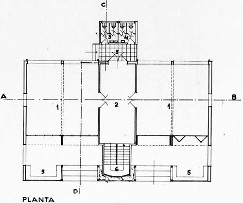 L'obra s'aixeca sobre un basament (element intermig entre edifici i terra) de pedra per remarcar la voluntat de separar la casa de la natura i de que aquesta reposi sobre un pla, amb el qual entrin en contacte l'arquitectura i la topografia lleugerament complicada del solar. Aquesta obra tradueix els valors de l’arquitectura mediterrània i, amb ella, l’estructura clàssica d'element pesant sustentador (basament de pedra) i element lleuger sustentat (edifici arrebossat), una estructura que reprodueix l’ordre natural dels cossos sotmesos a la llei de la gravetat. Aquest contrast entre la pedra (rugós i pesat) i l'arrebossat (llis i lleuger) podria ser la raó de l'elecció d'aquests materials tan típicament mediterranis. El Mediterrani és el lloc del Sol, la tuberculosis necessita d'aquest Sol. La manera que té de plasmar el concepte del mediterrani sobre l'arquitectura es fent servir, per una part, la claredat del mediterrani a través de l'arquitectura grega i romana (l'hospital dóna la impressió de voler ser com un partenó pels efectes de les dues fileres de columnes situades a l' entrada), i per l'altre, el misteri "las columnas saludan a los niños?" (pregunta llençada a l'aire pel conferenciant) Sert utilitza diversos conceptes del racionalisme regionalista, com per exemple passar d'una arquitectura més industrial cap a una arquitectura que retorna als materials naturals propis del lloc (regionalista), i fer una arquitectura sense ornamentació. Le Corbusier també fa aquest canvi revolucionant la seva l'arquitectura amb el retorn a la natura utilitzant materials tradicionals, la saviesa del primitiu (retornant a l'origen), redescobrint nou mobiliari de peces redimensionades, úniques del lloc en el qual s'ubiquen, preferiblement de materials naturals (és a dir, no segueix amb els mobles industrialitzats) Un exemple de cada arquitecte que mostren l'aplicació d'aquests materials redescoberts i dels basaments de pedra: