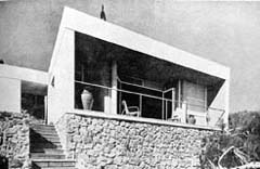 Les cases del Garraf (1934-35) tenen diferents tipologies, i tan a la tipologia C d'aquestes com a l'escola, Sert utilitza la volta a la catalana amb ús estructural, replantejant-ne la forma tradicional i, com ja hem dit abans, en comptes de recolzar-la en murs de càrrega, ho fa en pòrtics (pilars i jàsseres). L'estructura de la terrassa de l'escola és similar a la que va fer Le Corbusier a la Casa Weissenhof (1927), fins i tot en el seu alçat lateral. Aquesta consisteix en una estreta franja de sostre que es doblega en arribar als extrems, delimitant el contorn d'una "finestra" que emmarca visualment l'espai lliure recuperat amb la coberta plana, i a l'escola, l'espai d'esbarjo, on Sert col·loca una doble filera de pilars rodons. La incorporació de la volta pel Moviment Modern i més tard per Le Corbusier va tenir lloc, aproximadament, al 1919 amb la Maison Monol i posteriorment amb la Weekend house, a París, al 1935. Ell va utilitzar un tipus de volta catalana rebaixada de formigó, mentre que la de Sert estava feta de dues o tres capes de rajola montades a l'aire i sense encofrar. Les voltes de la Weekend house estan revestides de fusta "Plywood" per la part interior, els envans estan construïts amb maons d'obra vista. Les parets rústiques de pedra i el sostre amb fusta contrasten amb el ciment i les finestres d'acer manufacturades, on utilitza pantalles de vidre de "Nevada". L'interior de la casa té acabats amb color, és una espècie de versió de la primera planta de la Ville Savoye a Poissy, França (1929). La coberta de la Weekend house és ajardinada.
